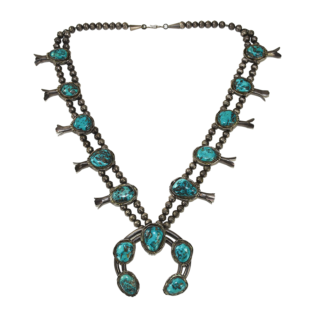 Native American Sterling Silver Turquoise Squash Blossom Necklace