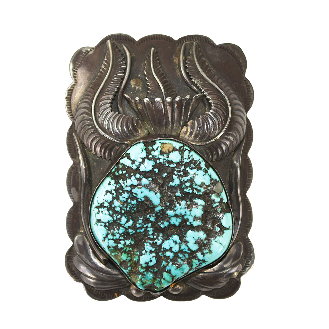 Native American Sterling Silver Turquoise Buckle 4.4ozt