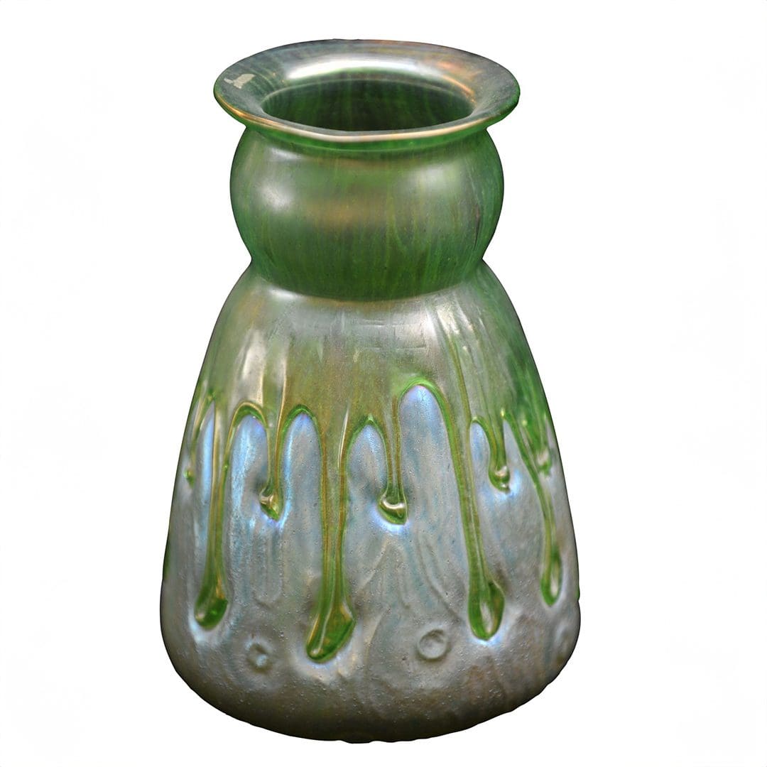 Austrian or Loetz Iridescent and Applied Glass Vase