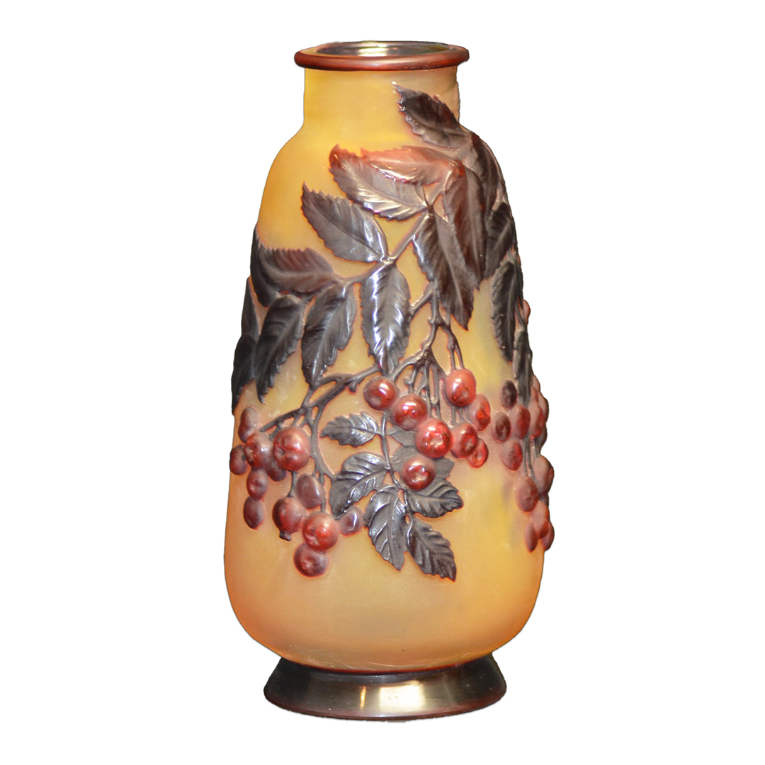Galle Vase Blow-Out Overlay Glass Cherry Vase Circa 1900