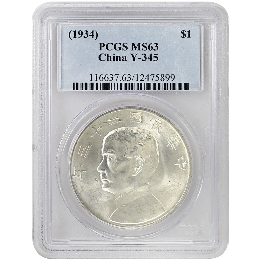 (1934) $1 CHINA, PCGS MS63, Y-345 BLAZING LUSTER!