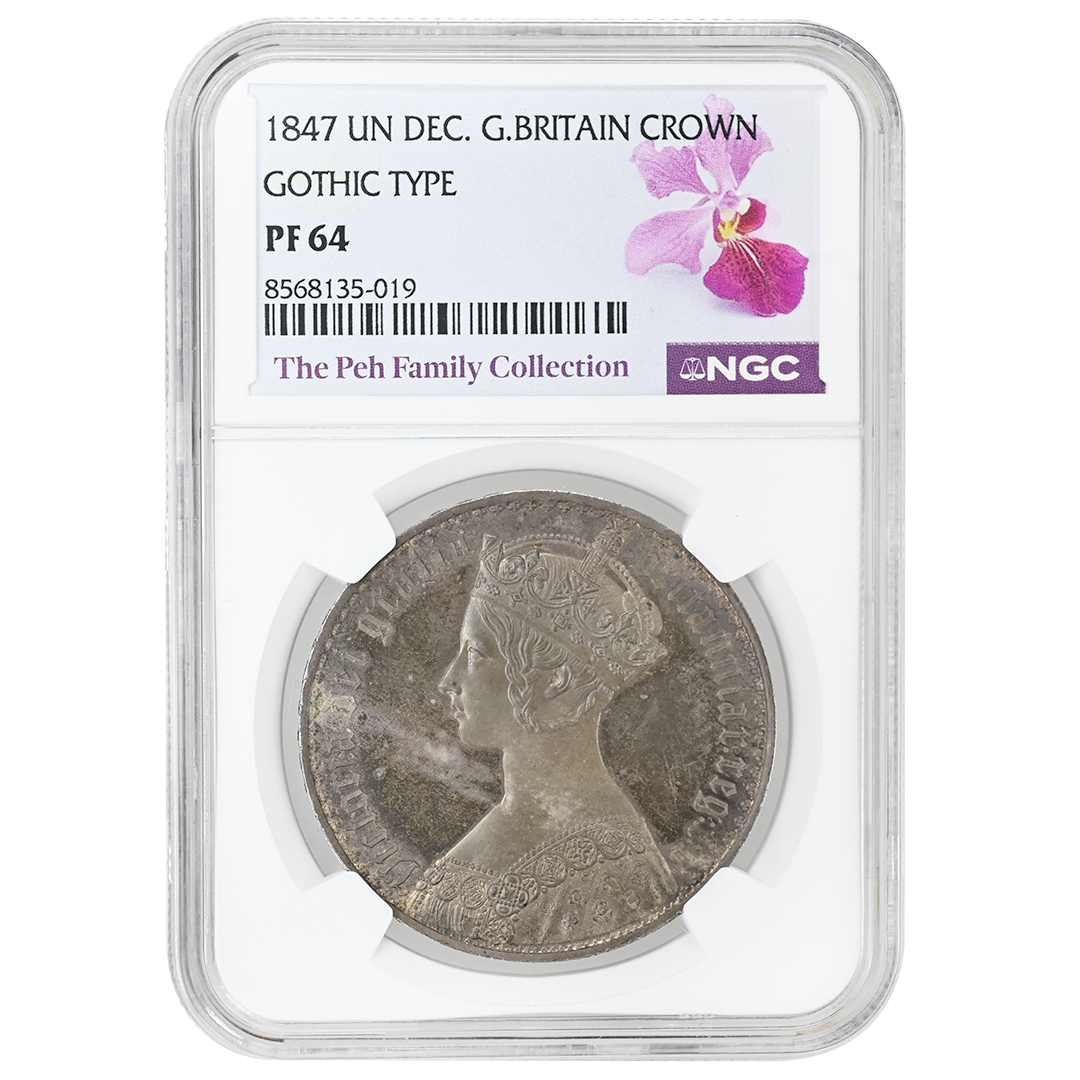 1847 Crown GREAT BRITAIN, Victoria UN DECIMO, GOTHIC TYPE NGC PF64