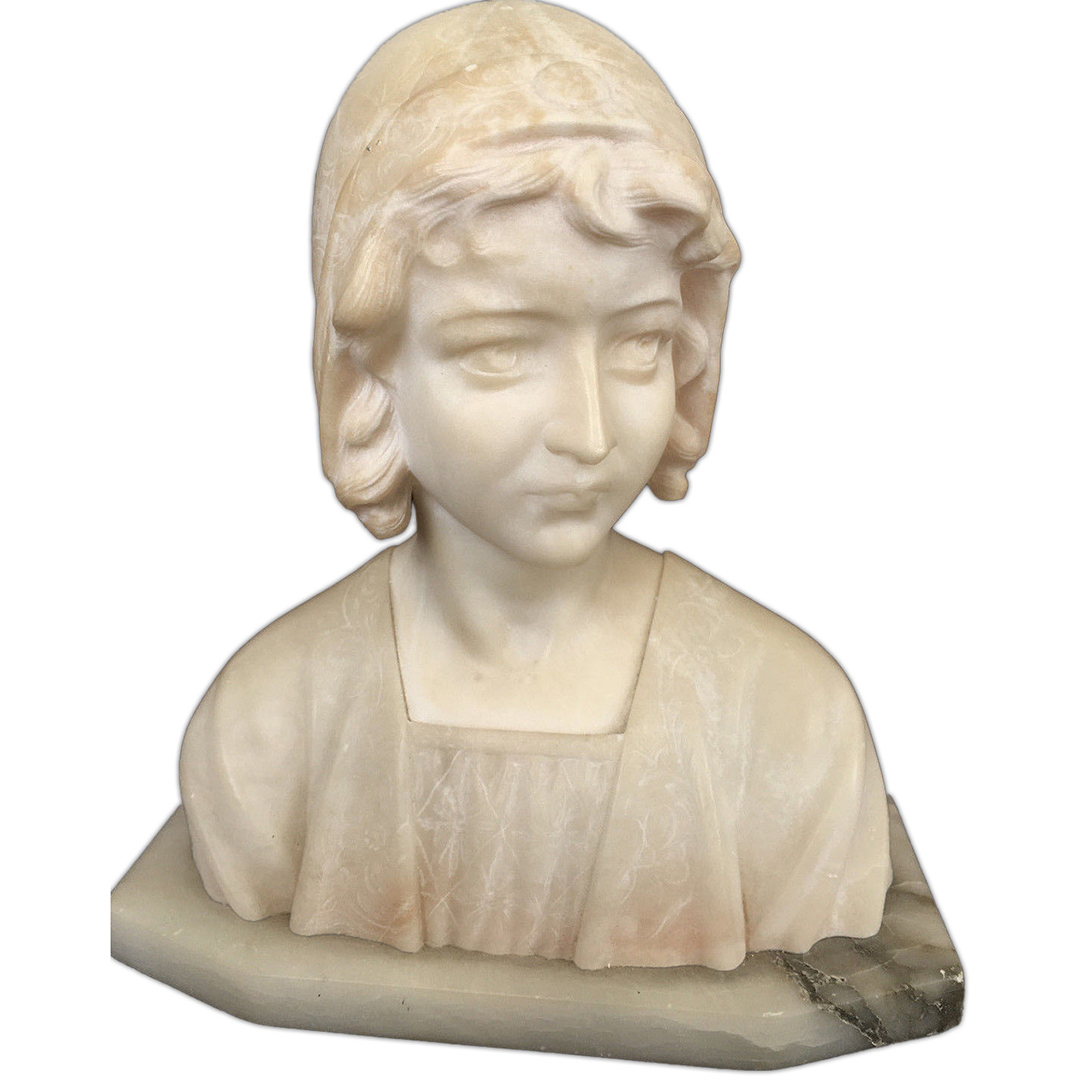 Alabaster Carved Sculpture Art Nouveau Woman with large headpiece