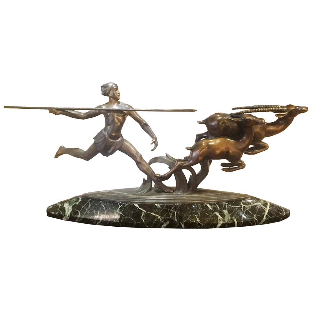 “The Hunter” Antique Bronze Statue Man Hunting Gazelle Alexander Kelety 40″ Wide